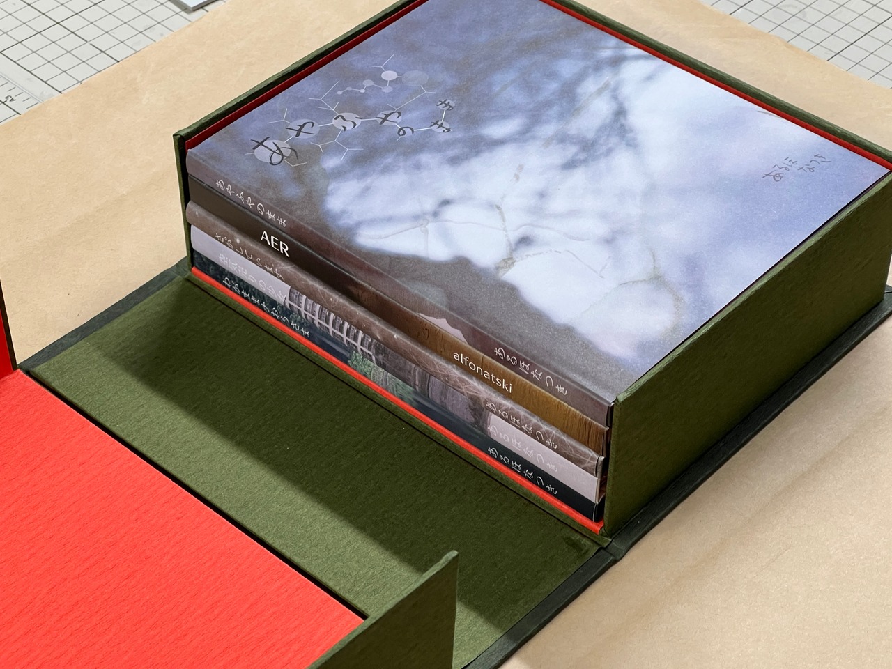 あるほなつきの、創作アートブック「空気シリーズ」第5弾の出版を記念して、特製5冊組BOXを製作しました。